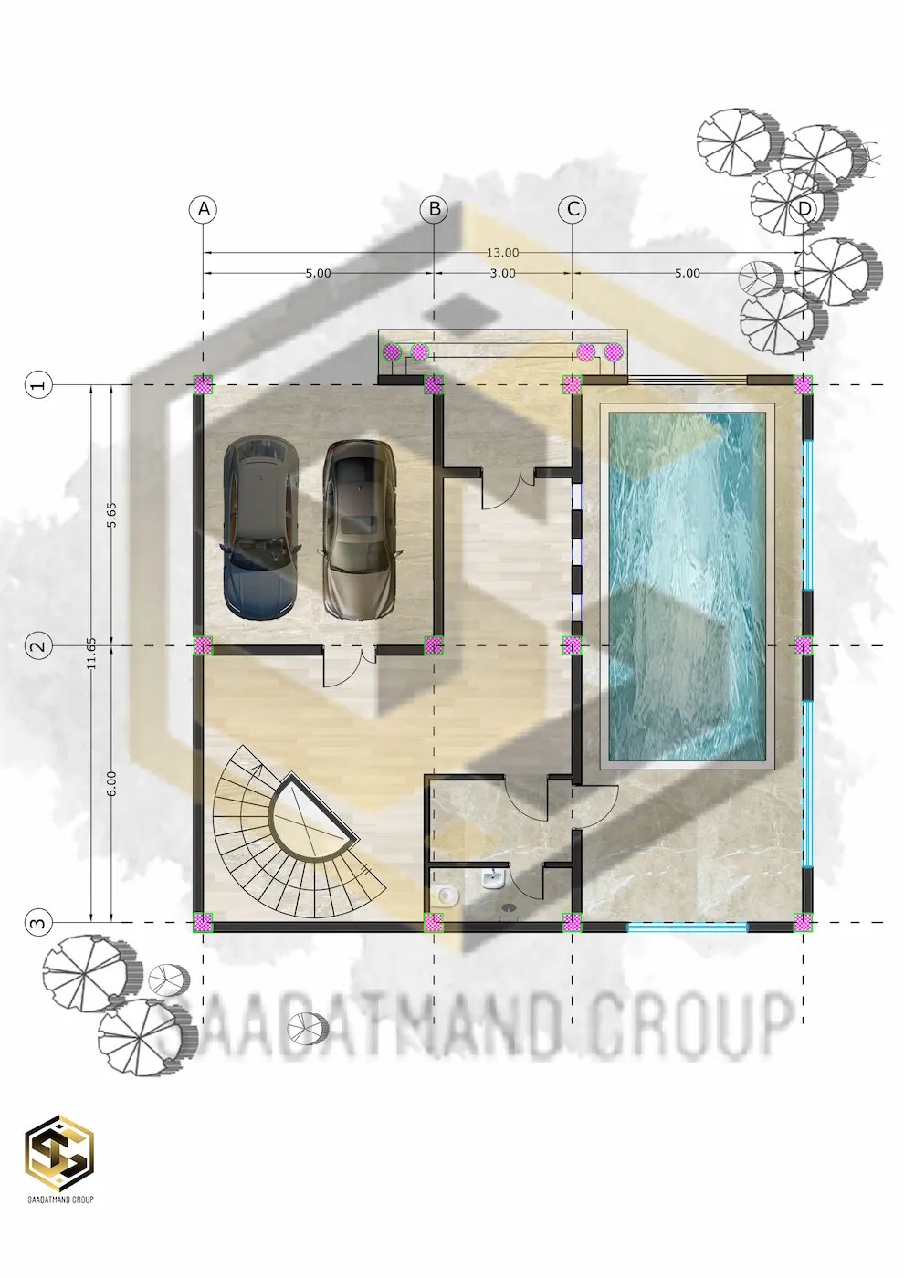 چهارطبقه ویلایی بااستخرو روف مساحت ۶۰۰ مترمربع